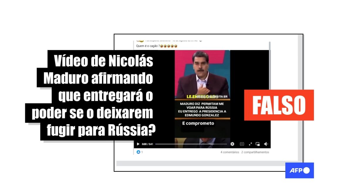 No vídeo, de 41 segundos de duração, Maduro parece dizer, em espanhol: “Comprometo-me a entregar o poder a Edmundo González se me deixarem escapar para a Rússia com minha família e sem ser processado por nenhum crime de corrupção”. Logo depois, um narrador diz que o discurso teria sido feito “em cadeia nacional” e que a decisão do mandatário seria para “garantir a paz na Venezuela”, tendo gerado um “um terremoto político dentro e fora do país”.