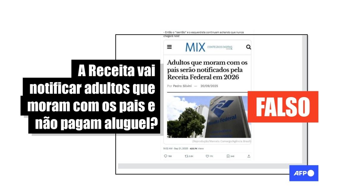 “Adultos que moram com os pais serão notificados pela Receita Federal em 2026”, lê-se em uma manchete de um artigo, compartilhada no X pelo vereador Carlos Bolsonaro (PL).