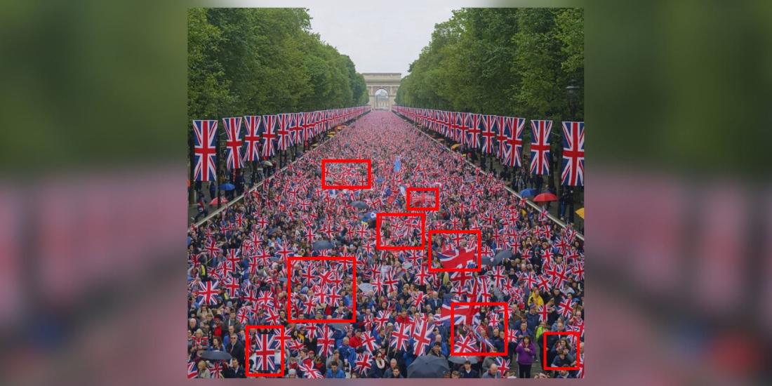 Imagem de rua repleta de bandeiras britânicas em Londres foi gerada por IA
