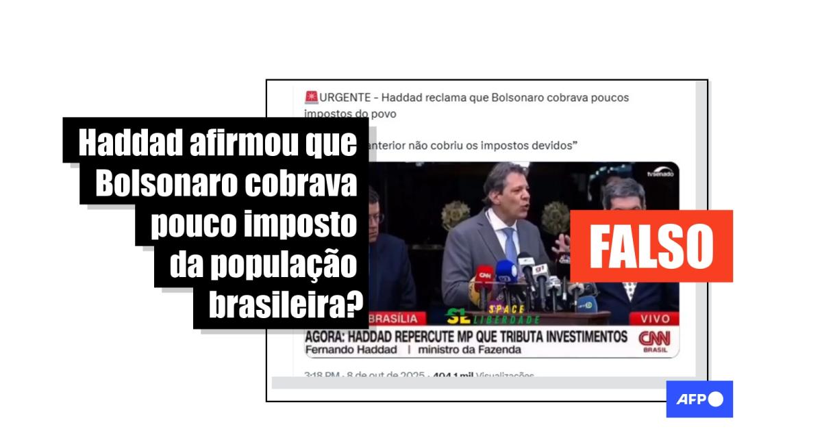 Em 7 de outubro de 2025, o ministro da Fazenda, Fernando Haddad, concedeu uma entrevista coletiva sobre a sua expectativa para a análise de uma medida provisória que previa o aumento de tributação de aplicações financeiras. Desde então, publicações visualizadas mais de 400 mil vezes compartilham um trecho da entrevista com a alegação de que o ministro reclamou que o governo do ex-presidente Jair Bolsonaro (PL) cobrava pouco imposto da população. Na realidade, Haddad disse que o governo anterior não cobrou os impostos devidos de empresas de apostas online, as chamadas bets.