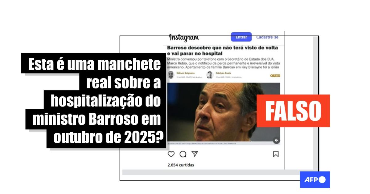 Publicações compartilham manchete manipulada para enganar sobre hospitalização de Barroso em outubro de 2025