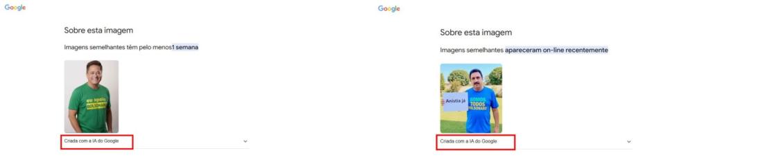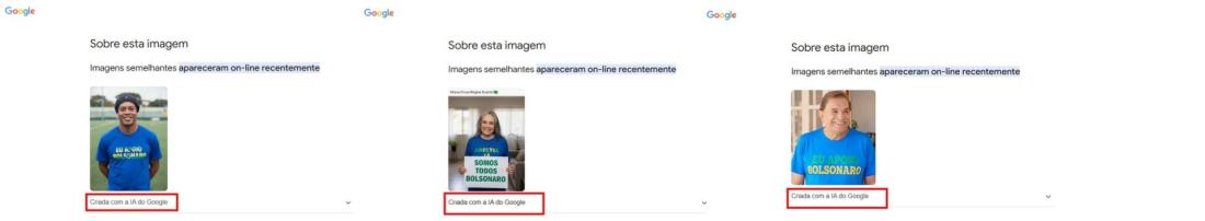 Mas, ao clicar no item “Sobre esta imagem”, disponível na busca reversa do Google, foi exibida uma mensagem com a informação de que o material foi criado “pela IA do Google”. O AFP Checamos realizou o mesmo procedimento em todas as imagens: