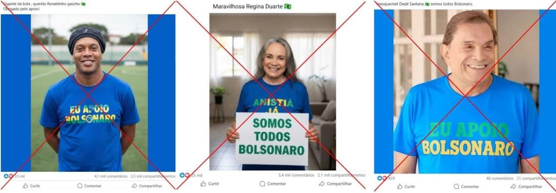 Publicações geradas por IA fabricam suposta campanha de personalidades em apoio a Jair Bolsonaro