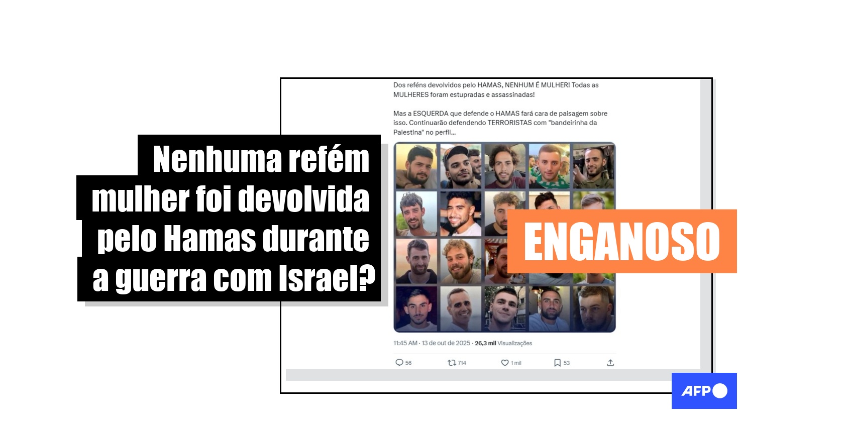 Em 13 de outubro de 2025, o movimento islamista palestino Hamas libertou os últimos 20 reféns vivos como parte de um acordo de cessar-fogo que visa pôr fim a dois anos de guerra contra Israel em Gaza. Diante disso, publicações nas redes sociais com mais de 35 mil interações apontam que o Hamas só libertou homens porque nenhuma das mulheres sequestradas em 7 de outubro de 2023 teria sobrevivido. Mas isso é enganoso: em tréguas anteriores ao cessar-fogo atual, o grupo libertou diversos dos 251 reféns sequestrados, incluindo dezenas de mulheres.