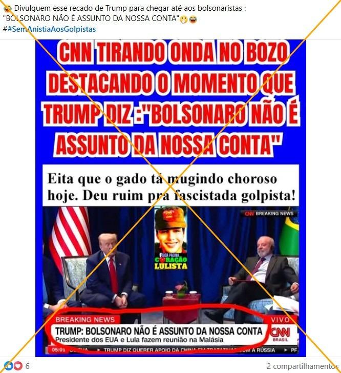 Algumas postagens compartilham um registro feito pela CNN Brasil com a legenda: “Trump: Bolsonaro não é assunto da nossa conta”.