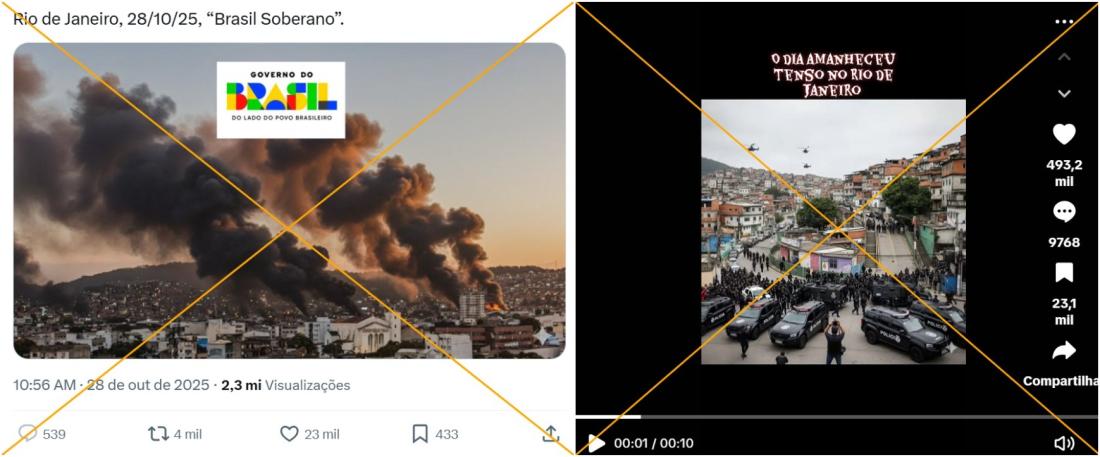O conteúdo circula após a megaoperação policial, ocorrida no dia 28 de outubro de 2025, contra o tráfico de drogas nos complexos do Alemão e da Penha, na zona norte do Rio de Janeiro.