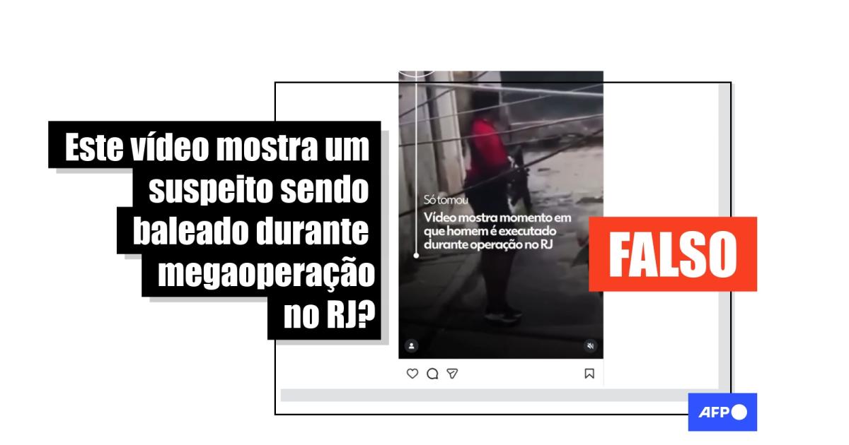 A megaoperação policial de 28 de outubro de 2025 nos Complexos do Alemão e da Penha, no Rio de Janeiro, se tornou a mais letal do país, com 121 mortos. Nesse contexto, publicações nas redes sociais com mais de 390 mil visualizações compartilham um vídeo gráfico supostamente de um suspeito sendo abatido durante a ação. Mas, na realidade, a sequência circula na internet desde outubro de 2024 e mostra uma gravação de um projeto que será lançado pela Globoplay, como confirmou a assessoria da emissora à AFP.