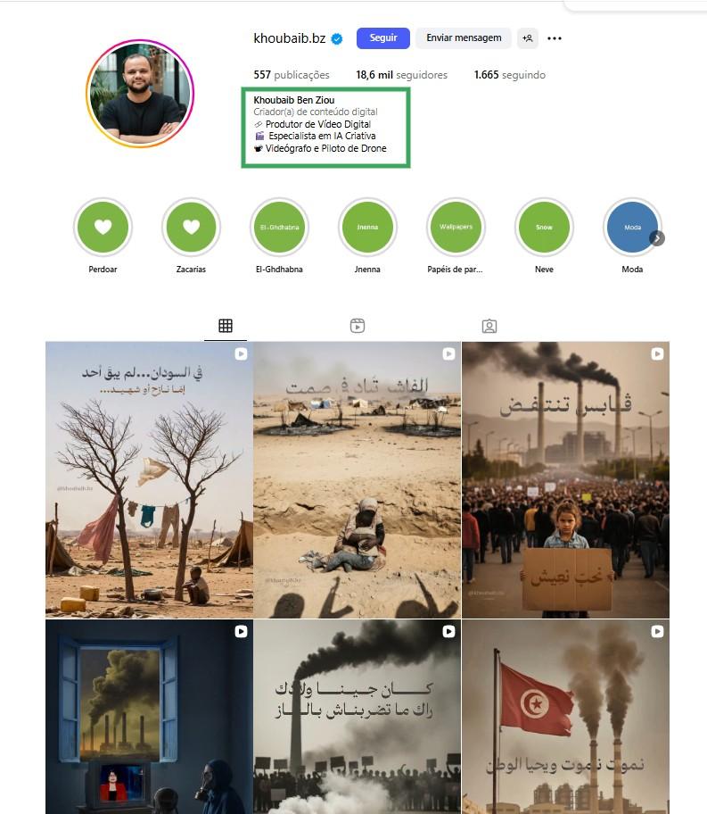 Uma busca no Instagram por esse usuário levou ao perfil correspondente, que se apresenta como um “especialista em IA Criativa” em sua biografia.