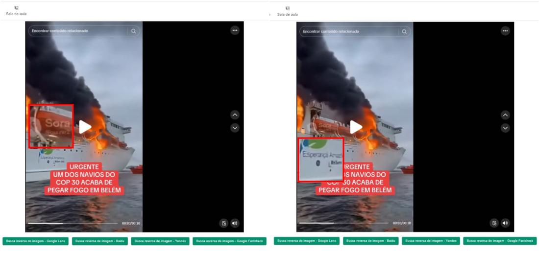 No entanto, o vídeo compartilhado nas redes não mostra um incêndio ocorrido em uma das embarcações utilizadas na COP30.