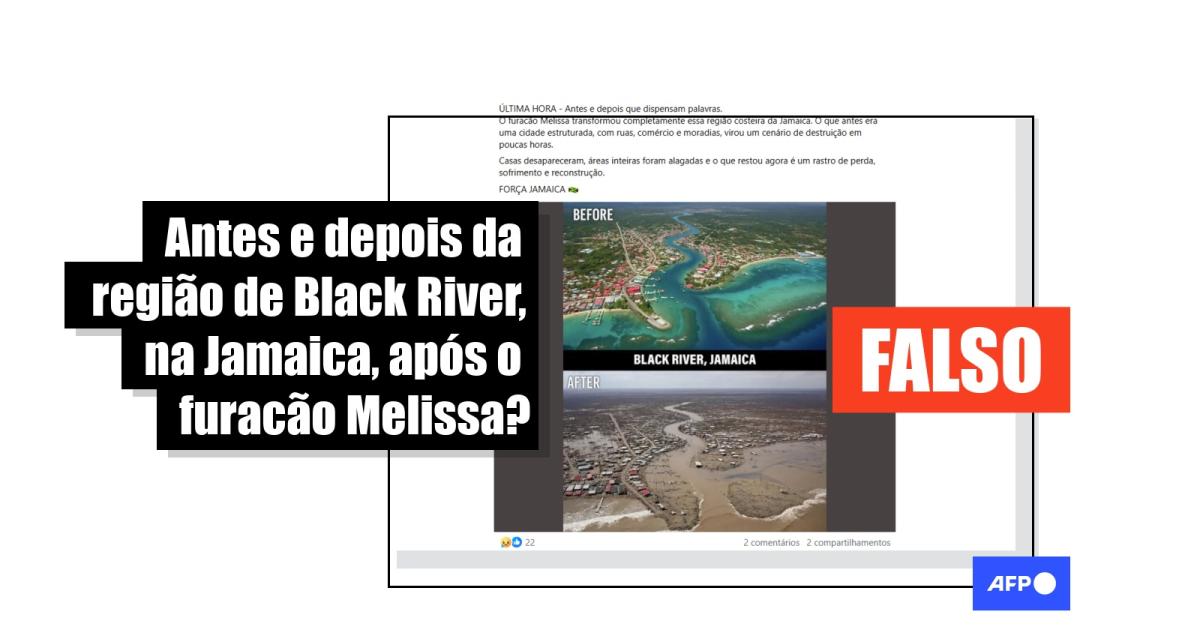 O furacão Melissa causou dezenas de mortes e inundações na Jamaica em 28 de outubro de 2025. Desde então, duas imagens que supostamente mostram a cidade costeira de Black River antes e depois do ciclone tiveram mais de 10 mil interações nas redes sociais. Mas as imagens foram criadas usando inteligência artificial (IA). Além disso, fotos de satélite mostram que a topografia do Rio Negro é diferente do que é exibido no conteúdo viralizado.