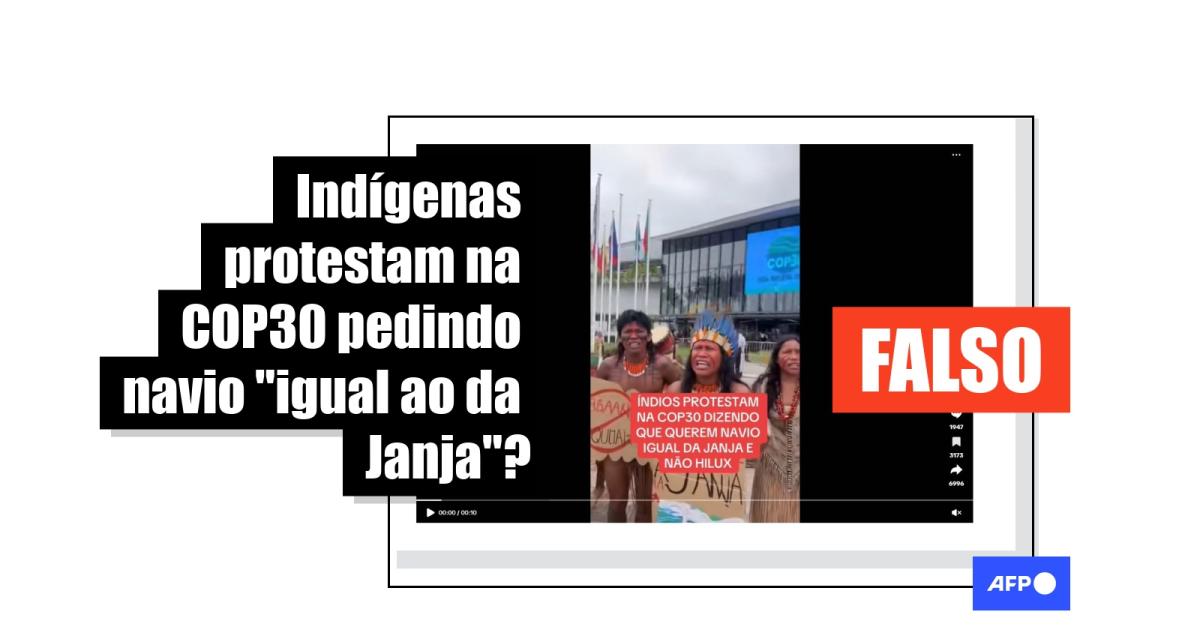 Após indígenas e ativistas tentarem entrar em uma área credenciada da Conferência das Nações Unidas sobre as Mudanças Climáticas em Belém (COP30) sem autorização no último 11 de novembro, um vídeo com mais de 1,8 milhão de visualizações circula nas redes sociais como se mostrasse um protesto de um grupo de indígenas pedindo um navio igual ao da primeira-dama Janja. Mas a gravação foi gerada por meio de inteligência artificial, como indica o perfil que publicou o conteúdo original.