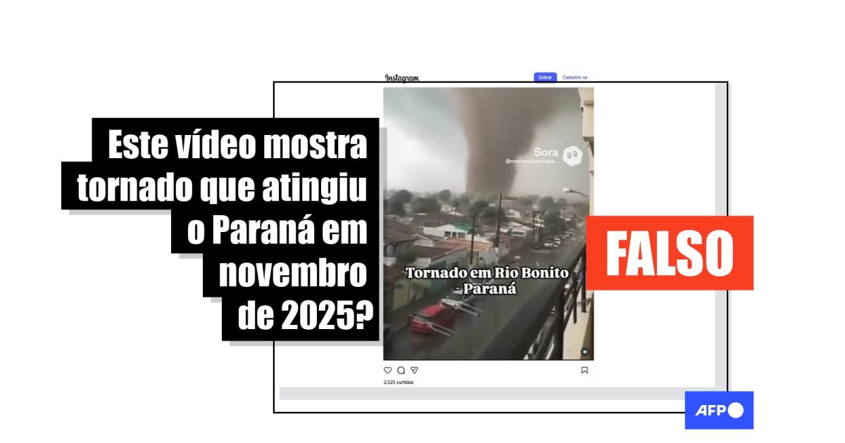 Desde que um tornado passou pelo Paraná deixando um rastro de destruição na cidade de Rio Bonito do Iguaçu, no início de novembro de 2025, começaram a circular nas redes sociais vídeos falsamente associados ao fenômeno meteorológico. Desde o dia seguinte ao tornado, uma gravação foi visualizada mais de 1,5 milhão de vezes como se mostrasse uma grande coluna de vento se aproximando de casas e aterrorizando moradores da cidade. Mas o registro foi criado por inteligência artificial (IA).