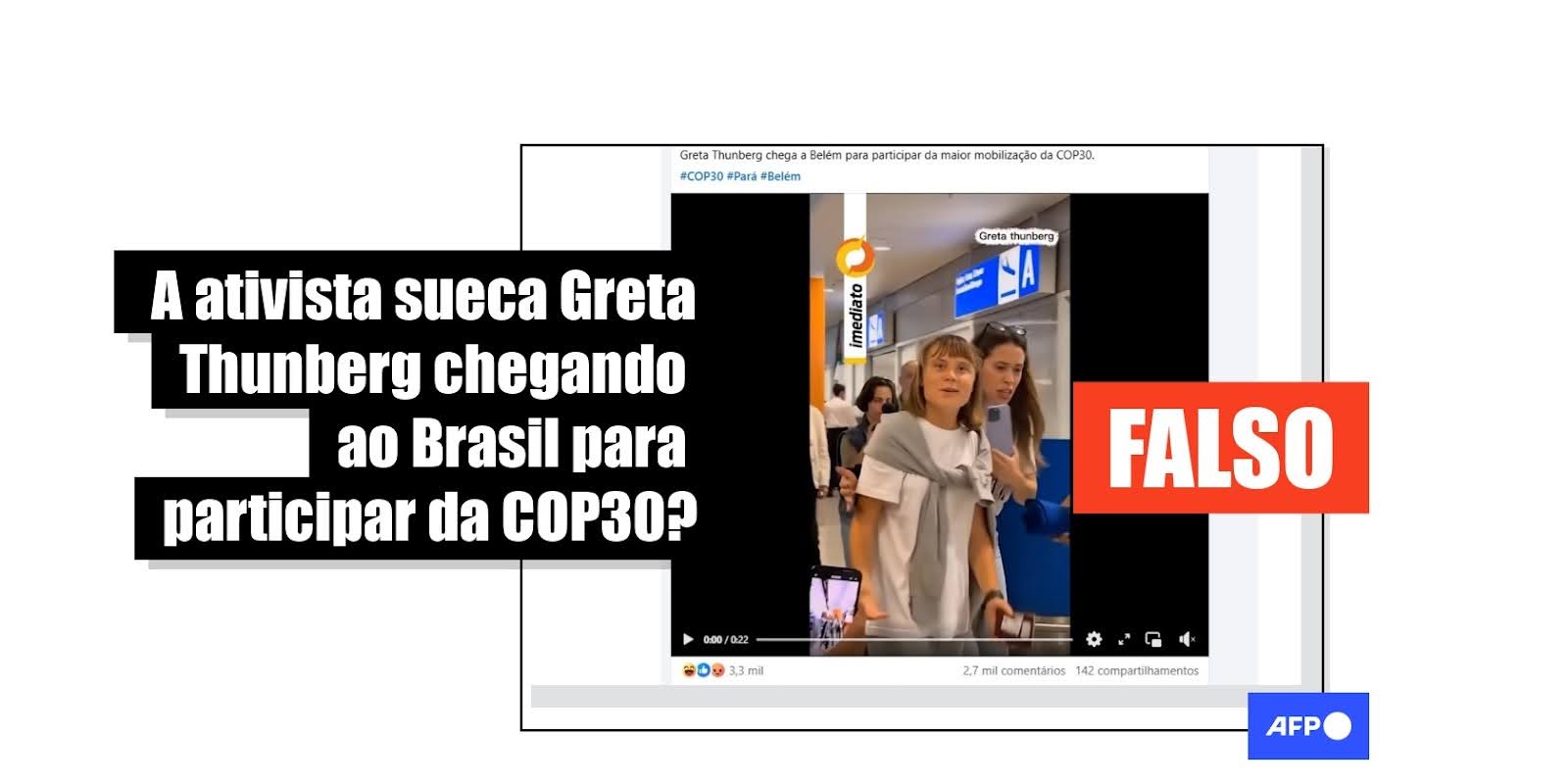 A COP30 entra em sua última semana com a chegada de ministros e autoridades de diferentes países para as negociações que seguem em Belém, no Pará, até 21 de novembro. Mas não é verdade que um vídeo, visualizado mais de 200 mil vezes nas redes, mostre a ativista climática Greta Thunberg chegando ao Brasil para participar da conferência. A gravação é anterior ao início da COP30, quando Thunberg desembarcou em Atenas após ser deportada por Israel. À AFP, a Fridays for Future Brasil confirmou que a ativista não participará da conferência climática das Nações Unidas de 2025.