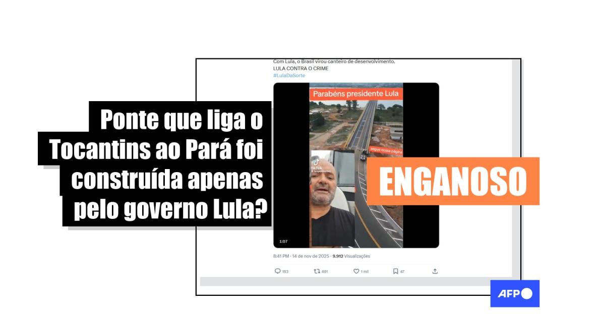 A construção da ponte de Xambioá, que liga o Tocantins ao Pará sobre o Rio Araguaia, inaugurada pelo governo federal em 18 de novembro de 2025, é tema recorrente de desinformação. Um vídeo em que um homem diz que a obra teria sido completamente realizada pelo governo de Luiz Inácio Lula da Silva (PT) e que Jair Bolsonaro (PL) não teria feito “nada” da construção foi visualizado mais de 1,3 milhão de vezes nas redes sociais desde 14 de novembro de 2025. Mas a construção da estrutura foi iniciada em 2020, durante o governo Bolsonaro, e estava 70% concluída no fim de 2022.