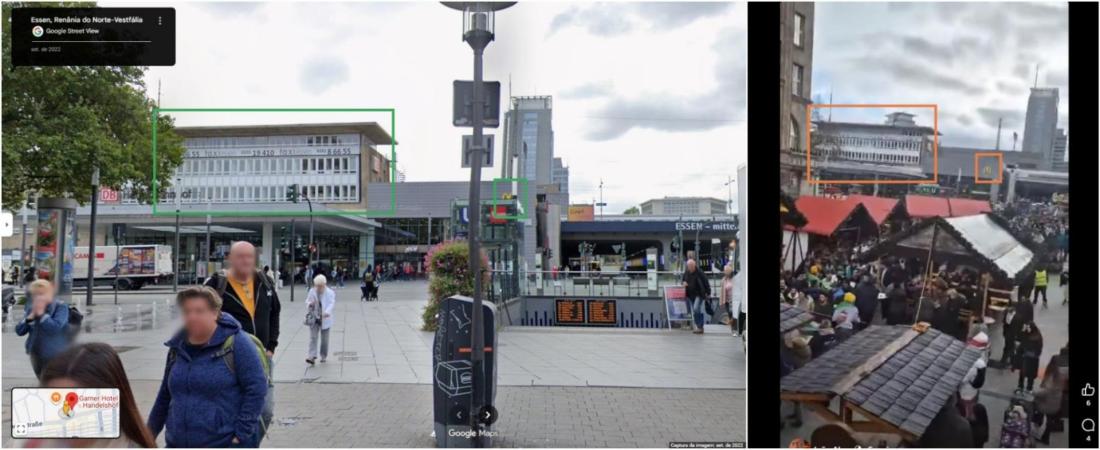 O vídeo viral mostra as fachadas da estação central de trem de Essen e de outros edifícios contíguos que estão localizados na praça, como evidenciam imagens do local no Google Street View.