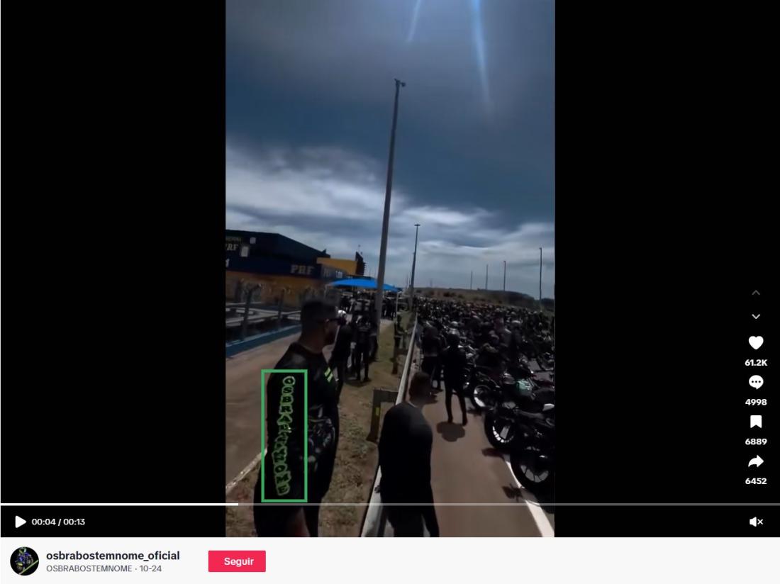 Na sequência viral, longas fileiras de motocicletas aparecem estacionadas e ocupando uma das faixas de uma rodovia. “Simplesmente fecharam a BR”, diz o homem que registra o momento. Ao fundo, é possível ver um edifício com a inscrição da Polícia Rodoviária Federal (PRF).