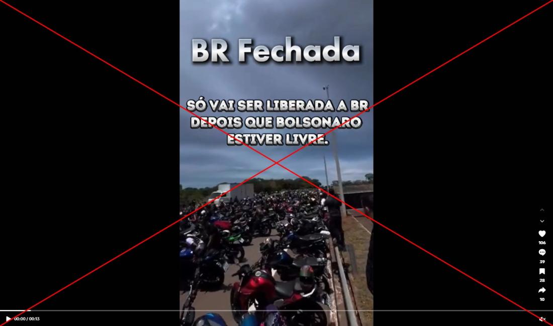 “BR Fechada. Só vai ser liberada a BR depois que Bolsonaro estiver livre”, diz uma das publicações que compartilha o vídeo viralizado no TikTok.