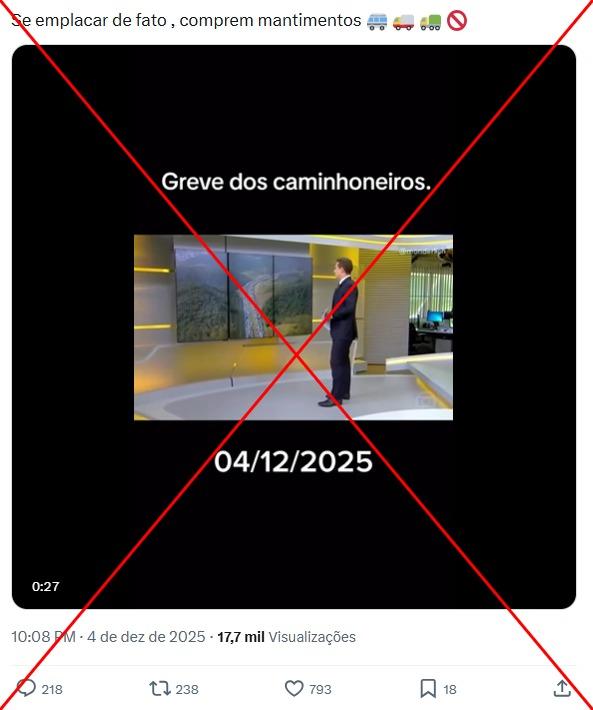 No entanto, a reportagem compartilhada pelas publicações não é recente. Além disso, o movimento de dezembro de 2025 foi considerado um “fracasso” pelos próprios articuladores e não há registro de bloqueios em rodovias até o momento desta publicação.