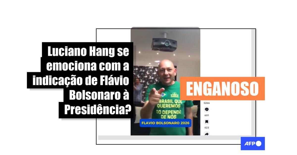 O senador Flávio Bolsonaro (PL-RJ) anunciou, em 5 de dezembro de 2025, que foi escolhido por seu pai, o ex-presidente Jair Bolsonaro, para disputar a Presidência da República na próxima eleição, em 2026. Desde então, um vídeo visualizado mais de 31 mil vezes nas redes sociais sugere que o empresário Luciano Hang, dono da rede de lojas Havan, estaria comemorando a indicação. Isso é enganoso: o vídeo é de 2018 e, na ocasião, Hang comemorava a vitória de Bolsonaro no pleito daquele ano.