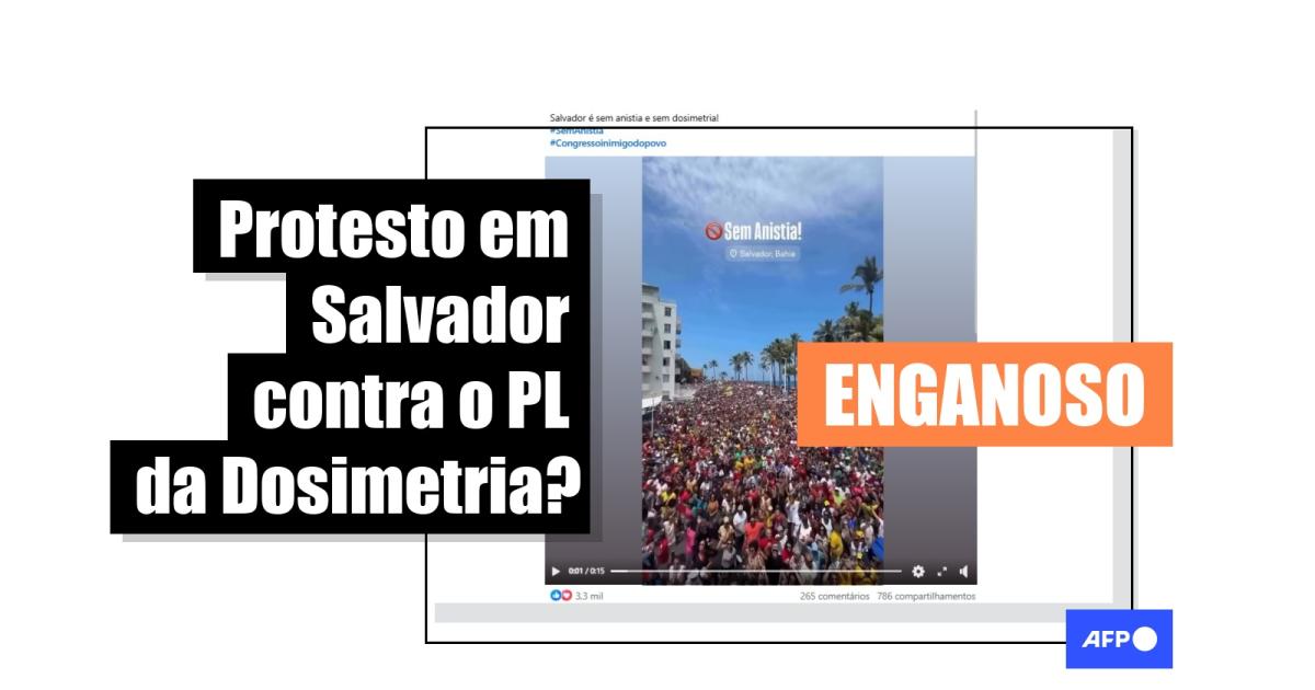 Manifestantes foram às ruas em diversas cidades brasileiras, em 14 de dezembro de 2025, para protestar contra o Projeto de Lei (PL) da Dosimetria, que propõe a redução das penas de condenados pelo Supremo Tribunal Federal (STF) por atos relacionados à tentativa de golpe de Estado — o ex-presidente Jair Bolsonaro, assim como outros réus, poderia se beneficiar da medida. Diante disso, um vídeo que acumula mais de 10 mil interações mostra uma multidão em Salvador e sugere que seria um registro dessa ocasião. Isso é enganoso: a gravação é de setembro de 2025 durante outro ato na capital baiana.