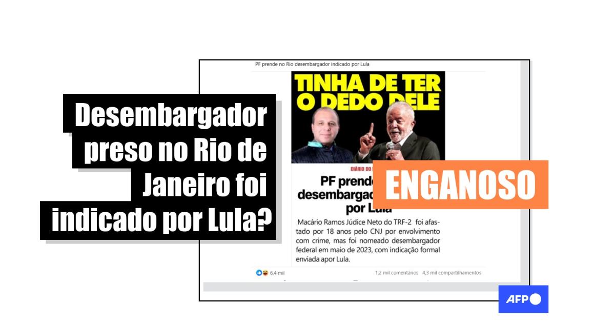 O desembargador federal Macário Ramos Júdice Neto foi preso em 16 de dezembro de 2025 suspeito de vazar informações sigilosas de uma operação que investiga o envolvimento de um deputado e outras pessoas com facções criminosas. Diante disso, publicações nas redes sociais com mais de 28 mil interações afirmam que o magistrado foi indicado ao cargo pelo presidente Luiz Inácio Lula da Silva (PT). Mas Neto foi promovido a desembargador pelo critério de antiguidade e após indicação do próprio Tribunal Regional Federal da 2ª Região (TRF-2). A Presidência acatou a decisão, como prevê a Constituição.