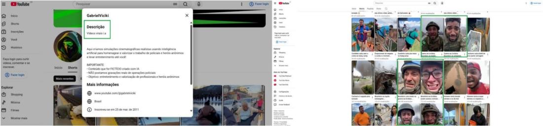 Na descrição do canal, é informado que a página publica conteúdo fictício e criado com IA: “Aqui criamos simulações cinematográficas realistas usando inteligência artificial para homenagear e valorizar o trabalho de policiais e heróis anônimos e levar entretenimento até você”.