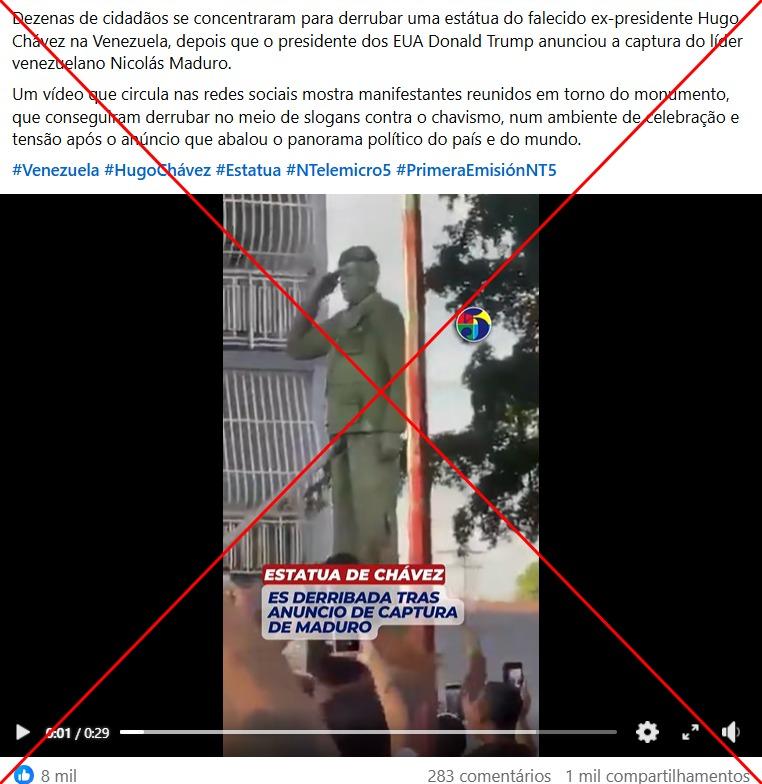 De acordo com as mensagens, visualizadas mais de 60 mil vezes nas redes sociais e compartilhadas no Facebook, no Instagram e no Kwai, a cena teria sido registrada após a ação norte-americana que capturou Maduro. Alguns posts sugerem que a estátua seria de Maduro.
