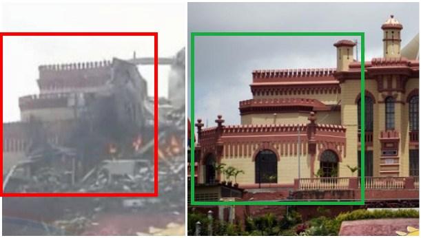 Outras publicações no Facebook, no Instagram, no X e no Telegram repetem a alegação junto a uma foto do Quartel da Montanha supostamente destruído.