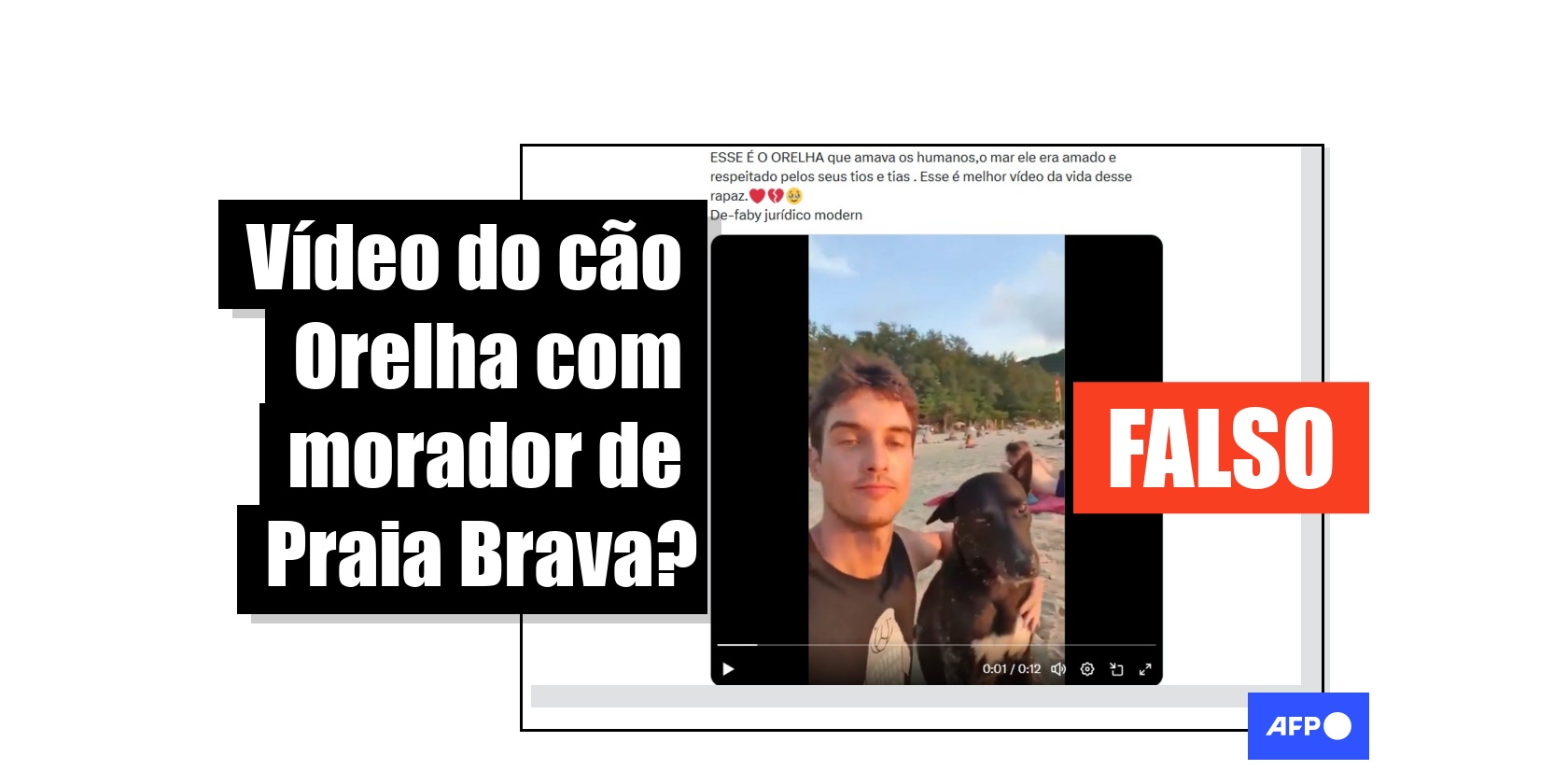 Vídeo feito na Tailândia circula falsamente como se mostrasse cão Orelha com morador de Praia Brava