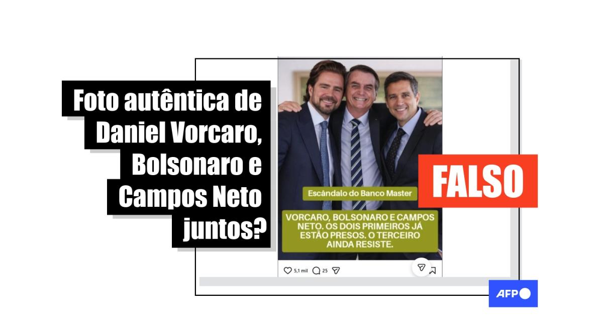 Em meio às investigações sobre o caso Banco Master, publicações com mais de 10 mil interações nas redes sociais desde 31 de janeiro de 2026 compartilham uma foto que supostamente mostraria o empresário Daniel Vorcaro, dono do banco, ao lado do ex-mandatário Jair Bolsonaro e do ex-presidente do Banco Central (BC) Roberto Campos Neto. No entanto, a imagem foi adulterada. O registro original, de 2019, mostra apenas Bolsonaro e Campos Neto durante a cerimônia de posse da presidência do BC, que não contou com a presença de Vorcaro.