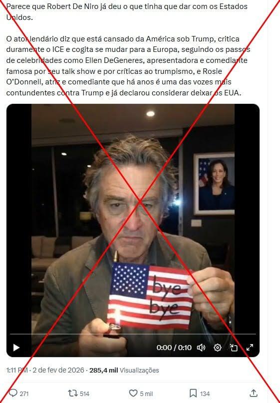 As postagens alegam que a mensagem indicaria que De Niro estaria considerando se mudar do país, assim como fez a apresentadora Ellen DeGeneres, que afirmou ter se mudado para a Inglaterra “por causa de Trump” após sua nova eleição em novembro de 2024.