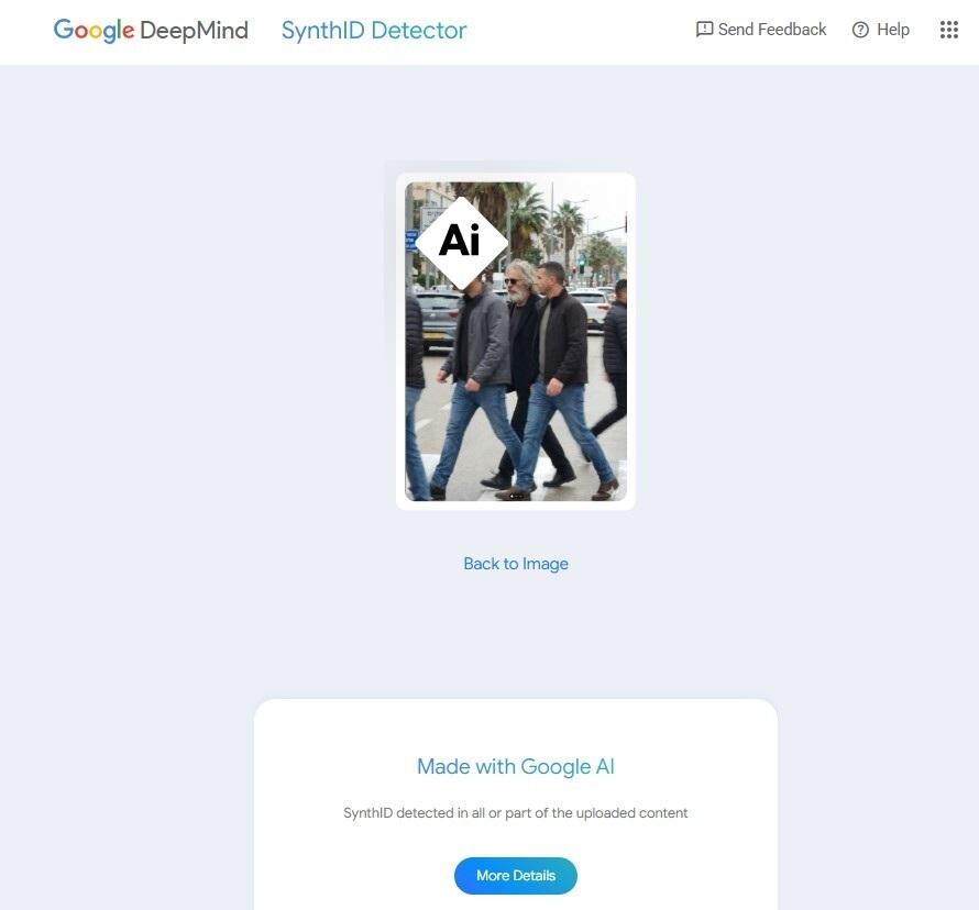 O mesmo foi comprovado ao submeter a imagem ao SynthID, ferramenta criada pelo Google DeepMind que detectou a presença de uma marca d’água invisível que identifica imagens criadas com a tecnologia da companhia.