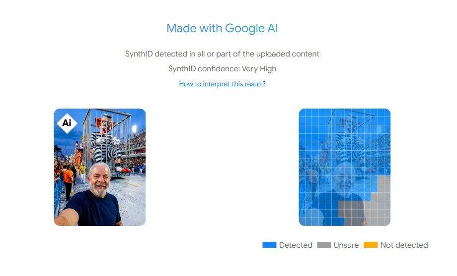 A AFP submeteu a imagem viral à análise do SynthID Detector, que identificou marcas d’água que indicam que o conteúdo foi criado com a IA do Google.