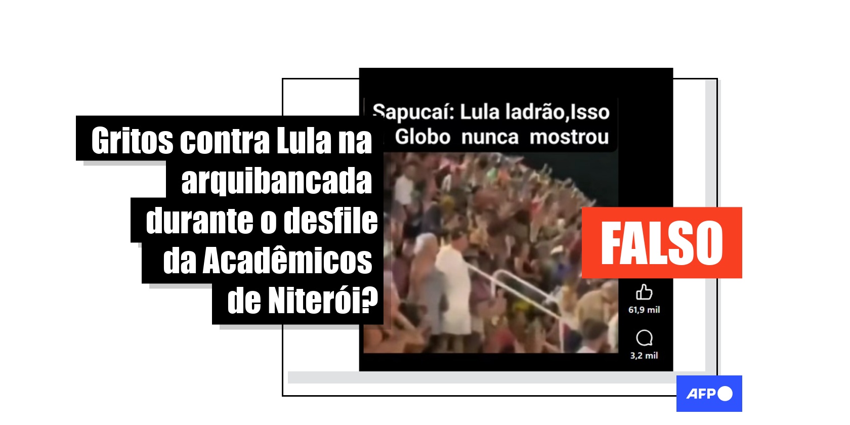 A escola de samba Acadêmicos de Niterói abriu o Carnaval do Rio no Sambódromo, no dia 15 de fevereiro de 2026, com um enredo que homenageou o presidente Luiz Inácio Lula da Silva (PT). Após o episódio, que gerou críticas da oposição, um vídeo que supostamente mostra o público da Marquês de Sapucaí entoando um canto contra o mandatário foi visualizado mais de 6,5 milhões de vezes nas redes sociais. Mas a sequência foi editada. Na original, a plateia cantava em apoio a Lula.