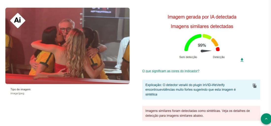 O Checamos também submeteu a imagem à ferramenta InVID-WeVerify, que identificou fortes evidências de que o conteúdo é sintético.