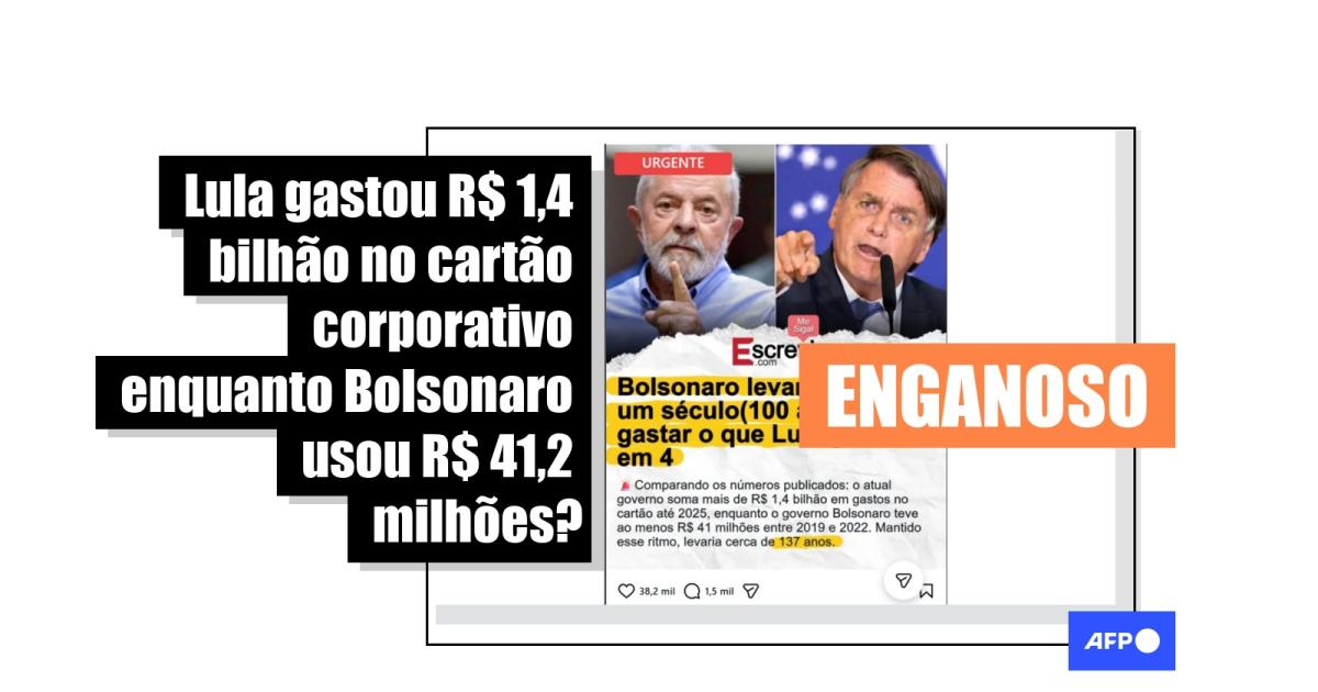 Em 20 de fevereiro de 2026, a revista Veja publicou uma reportagem afirmando que o governo de Luiz Inácio Lula da Silva (PT) gastou R$ 1,4 bilhão via cartão corporativo entre 2023 e 2025. Desde então, postagens com mais de 420 mil visualizações nas redes sociais comparam esse montante com R$ 41,2 milhões, quantia que teria sido utilizada pela gestão de Jair Bolsonaro (PL). Mas o valor atribuído a Lula corresponde às despesas de todos os órgãos do governo federal, enquanto os R$ 41,2 milhões correspondem especificamente aos gastos da Presidência no governo Bolsonaro com o cartão corporativo.