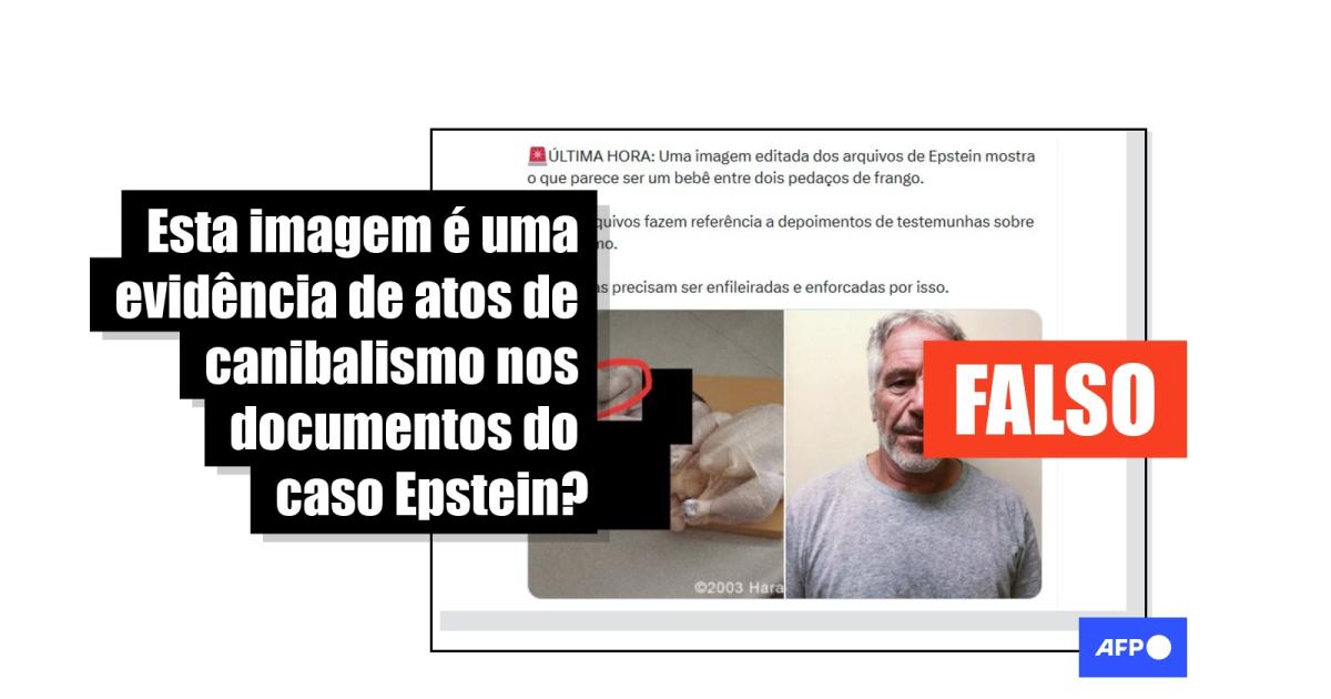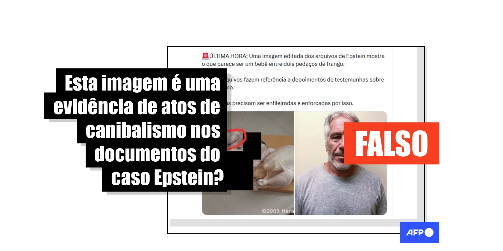 O Departamento de Justiça dos Estados Unidos (DoJ, na sigla em inglês) publicou, em 30 de janeiro de 2026, mais de três milhões de documentos relacionados ao criminoso sexual Jeffrey Epstein, que revelam a amplitude de sua rede de relacionamentos. Desde então, publicações que alegam que uma imagem de um suposto bebê entre pedaços de frango, divulgada pelo DoJ, seria uma evidência de atos de canibalismo cometidos pelo financista acumulam mais de 25 mil interações nas redes sociais. Mas isso é falso: trata-se de uma montagem feita por um fotógrafo e destinada a publicações vegetarianas.
