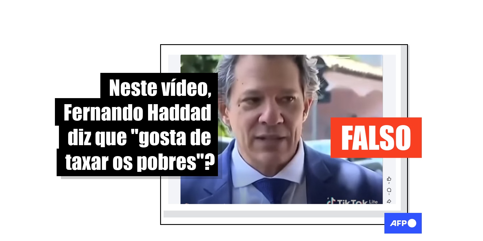 “Eu gosto de taxar os pobres. Não vou mentir para você que 98% da população brasileira é pobre. Como a gente só tem 2% de milionários, eu não acho justo taxar essa pouca quantidade”, parece dizer o ministro Fernando Haddad em um vídeo compartilhado no Facebook, no Instagram e no YouTube.