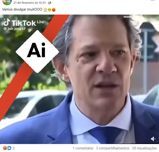 Vídeo em que Haddad diz que “gosta de taxar pobres” foi manipulado com IA