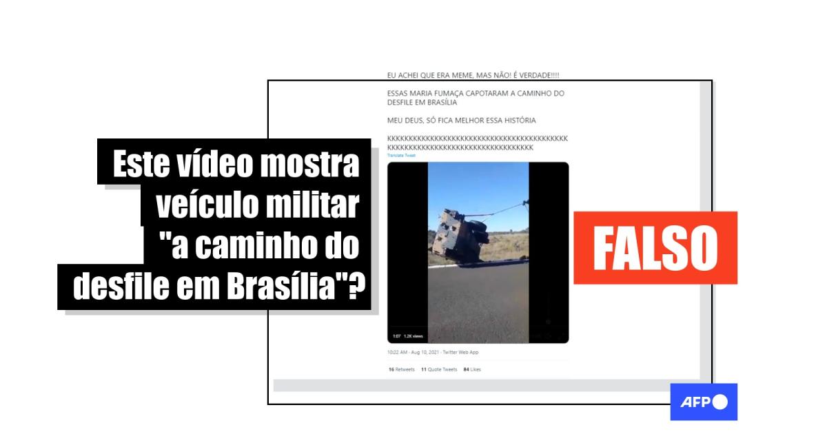 “EU ACHEI QUE ERA MEME, MAS NÃO! É VERDADE!!!!”, diz uma das publicações compartilhadas no Twitter (1, 2), no Facebook (1, 2) e no YouTube. “ESSAS MARIA FUMAÇA CAPOTARAM A CAMINHO DO DESFILE EM BRASÍLIA”, continua a mensagem.