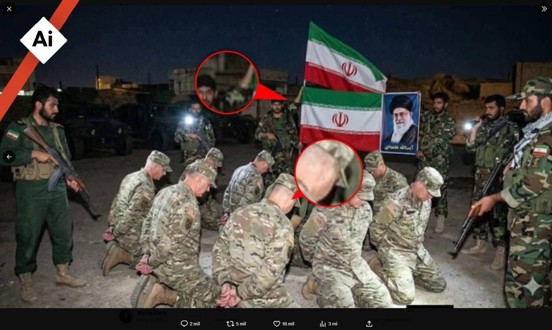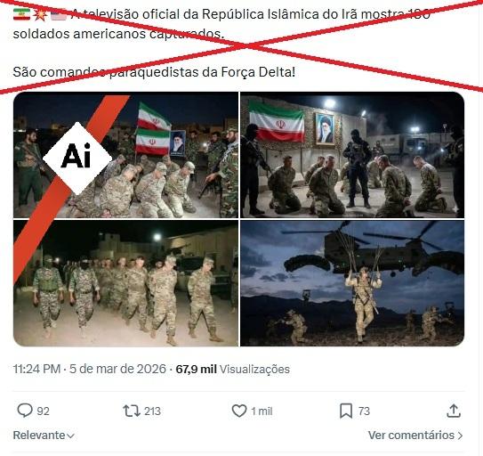 As imagens relacionadas a uma suposta captura de soldados norte-americanos pelo Irã também circulam no Instagram, no Facebook, no Threads e em outros idiomas, como inglês, francês, espanhol e árabe.