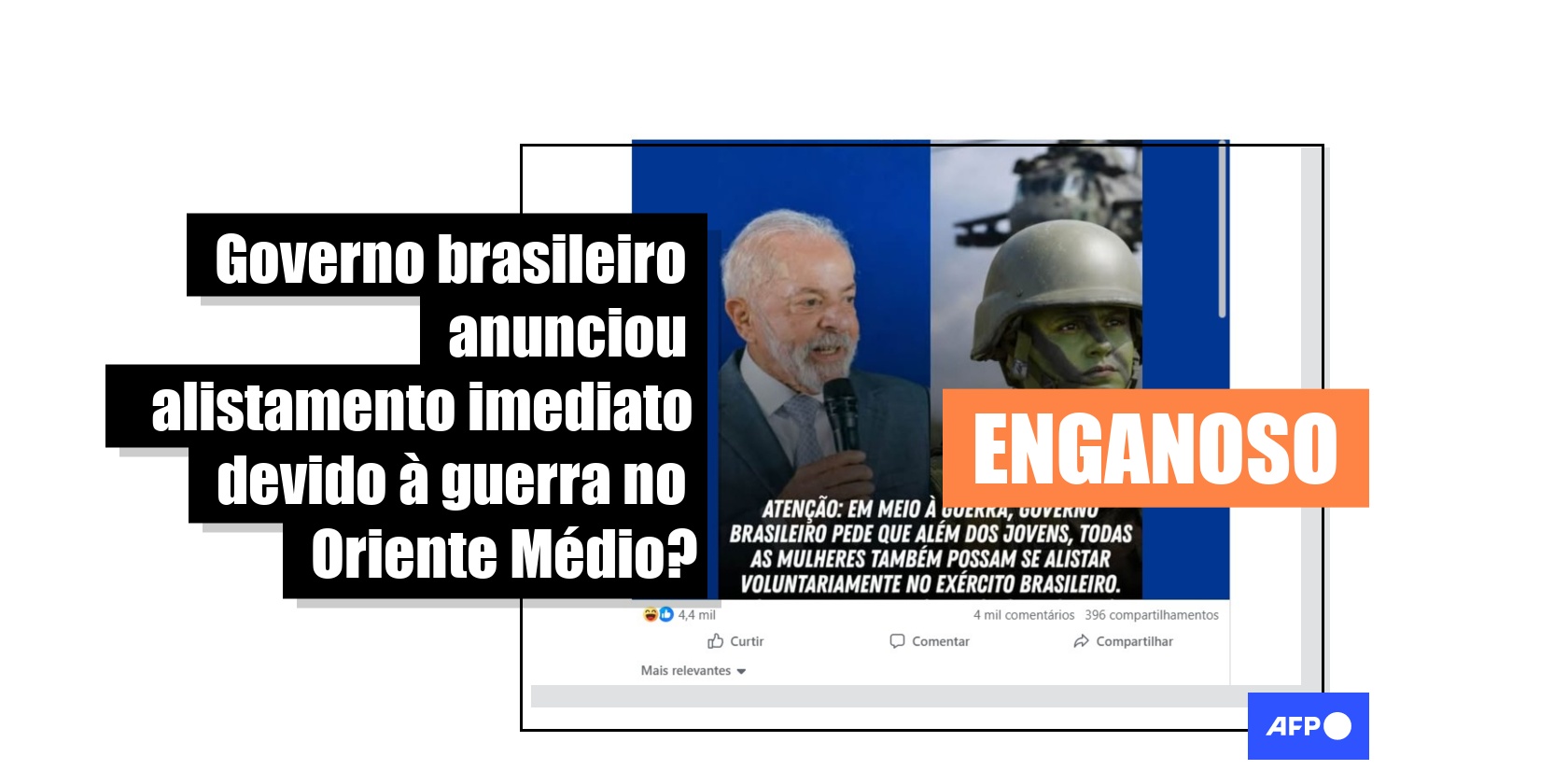 O governo brasileiro manifestou preocupação sobre a guerra no Oriente Médio, desencadeada por um ataque conjunto dos Estados Unidos e de Israel contra o Irã, em 28 de fevereiro de 2026, mas não é verdade que tenha anunciado o alistamento imediato de homens e mulheres devido ao conflito. O alistamento deste ano foi anunciado em dezembro de 2025 e irá selecionar para o serviço militar de 2027. Além disso, esse é o segundo ano em que mulheres podem se alistar de forma voluntária.
