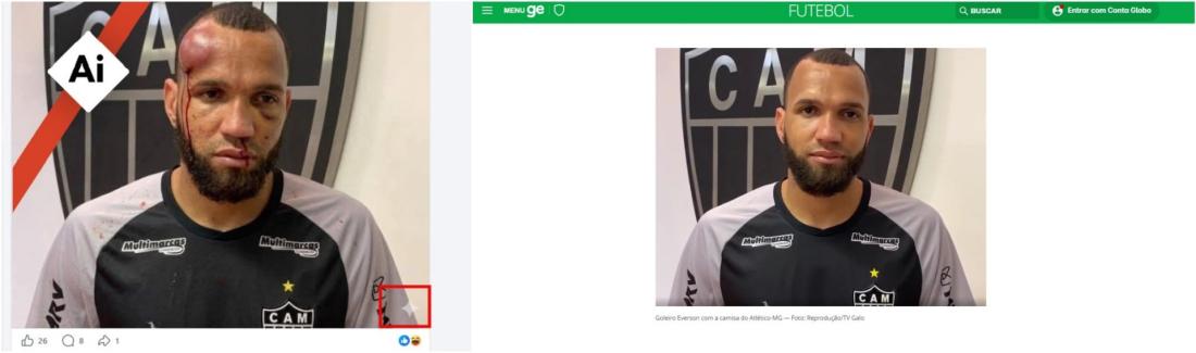 O clássico entre Cruzeiro e Atlético-MG na final do Campeonato Mineiro de 2026 foi marcado por uma briga generalizada ao final da partida, realizada em 8 de março, no Mineirão. Desde então, uma imagem do goleiro atleticano Everson com um grande hematoma na testa foi visualizada mais de 25 mil vezes por usuários nas redes sociais. Embora registros da imprensa mostrem que, no início da confusão, o jogador tenha batido de cabeça na trave, a fotografia não é autêntica. O material foi manipulado com inteligência artificial (IA).