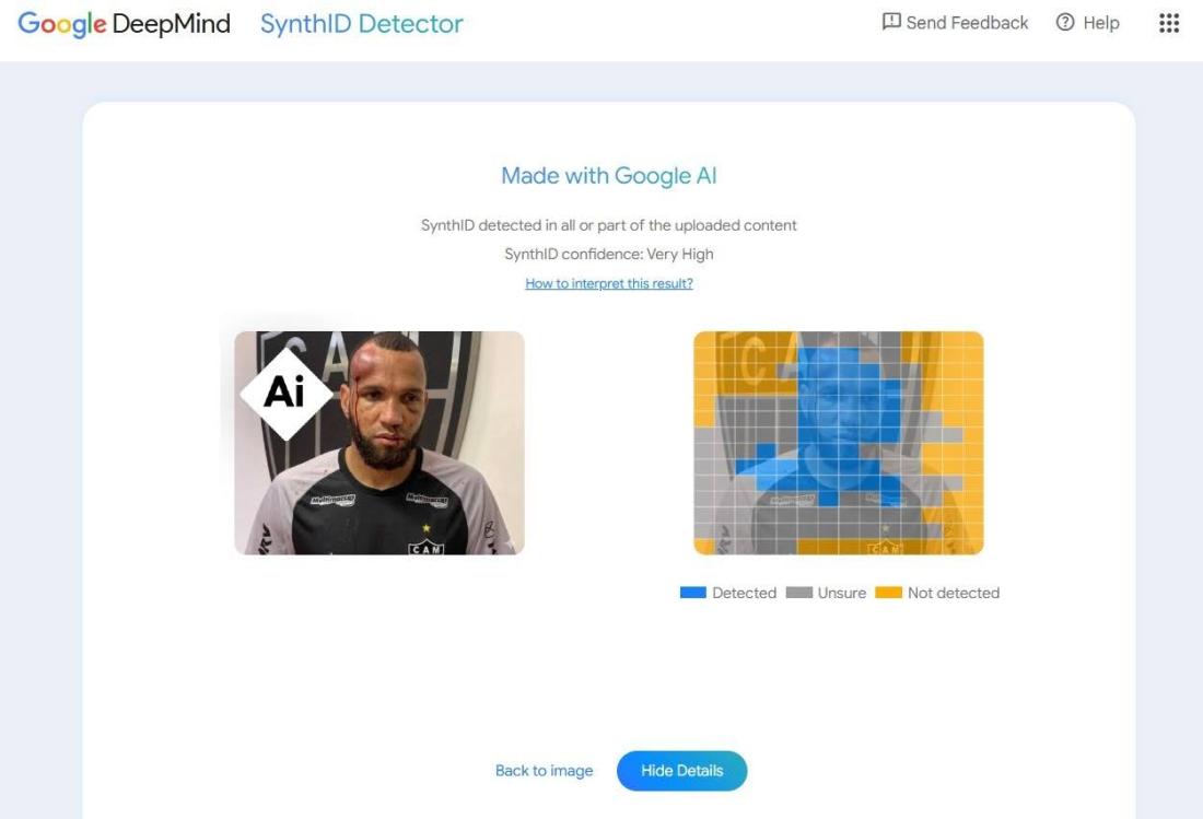 O AFP Checamos submeteu o material viral ao SynthID, plataforma desenvolvida pelo Google para detectar o uso de sua própria IA, que comprovou o uso da tecnologia “em toda ou parte do conteúdo”.