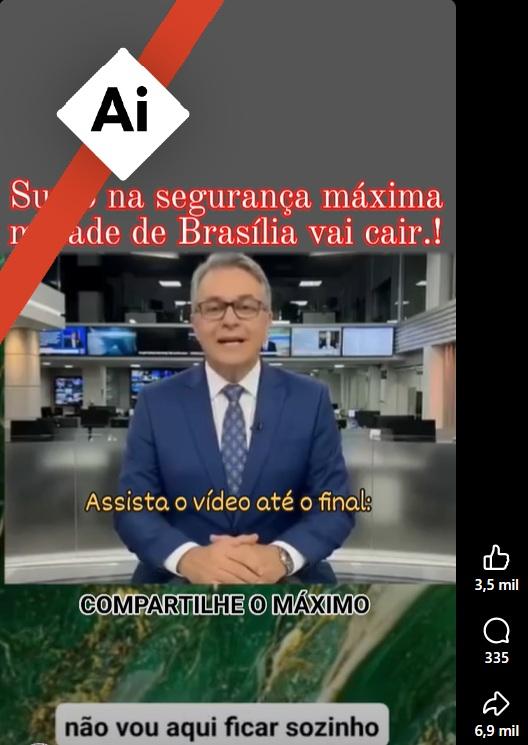 Na gravação, uma figura que se assemelha a um âncora de telejornal em um aparente estúdio de TV reporta a existência de um “corre-corre” em Brasília após Vorcaro “surtar” na prisão.