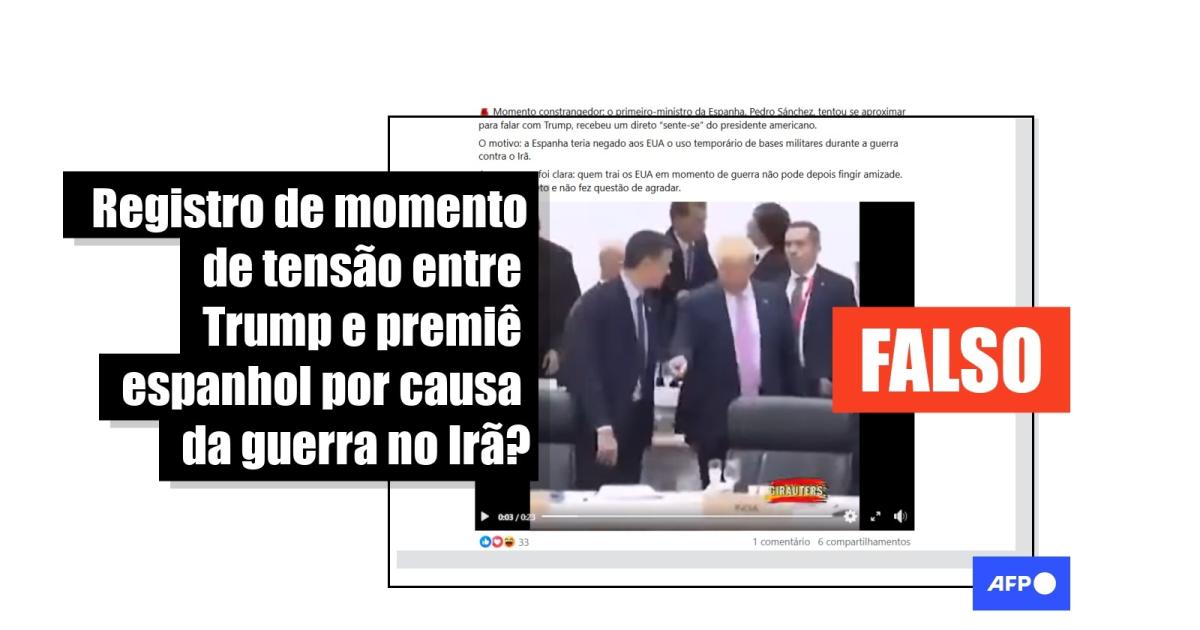 O primeiro-ministro da Espanha, Pedro Sánchez, criticou repetidamente os ataques dos Estados Unidos e de Israel contra o Irã que desencadearam a atual guerra no Oriente Médio, mas isso não levou o presidente norte-americano, Donald Trump, a repreender publicamente o premiê espanhol em uma reunião recente. Publicações com essa alegação foram visualizadas mais de 1.500 vezes nas redes sociais desde 8 de março de 2026. A gravação compartilhada como prova de que a interação ocorreu foi feita, no entanto, durante uma reunião do G20 em Osaka, há mais de cinco anos.