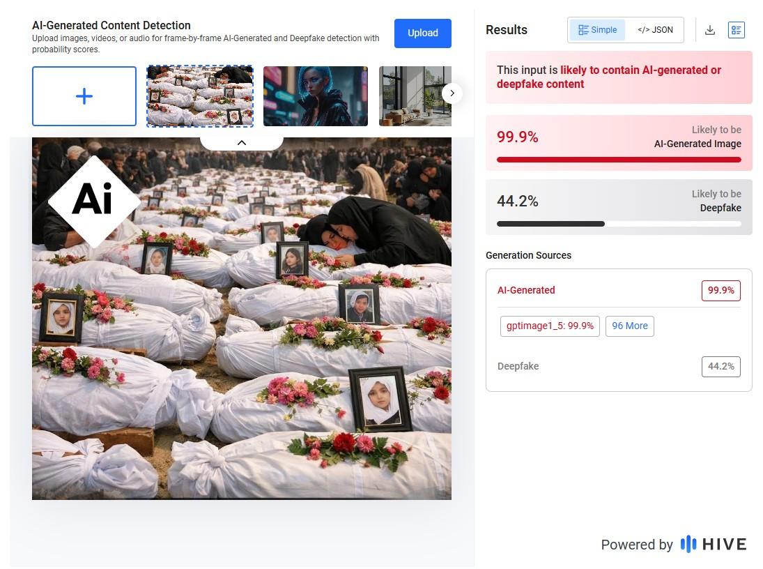 No entanto, a imagem viralizada não é um registro do funeral das mais de 150 vítimas do ocorrido, e foi criada com inteligência artificial.