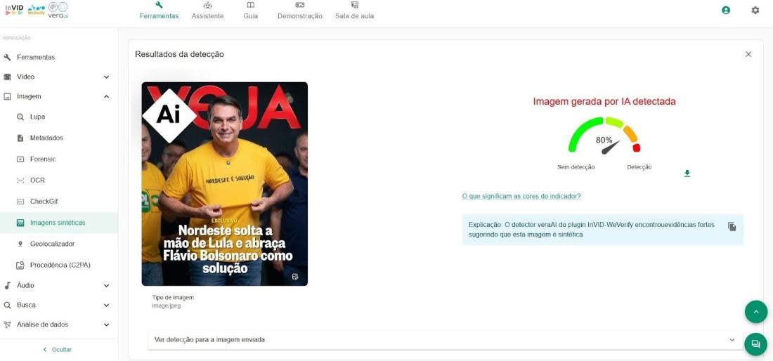 O AFP Checamos submeteu a fotografia à ferramenta de detecção de IA InVID-WeVerify, que apontou 80% de probabilidade de que o registro tenha sido manipulado.