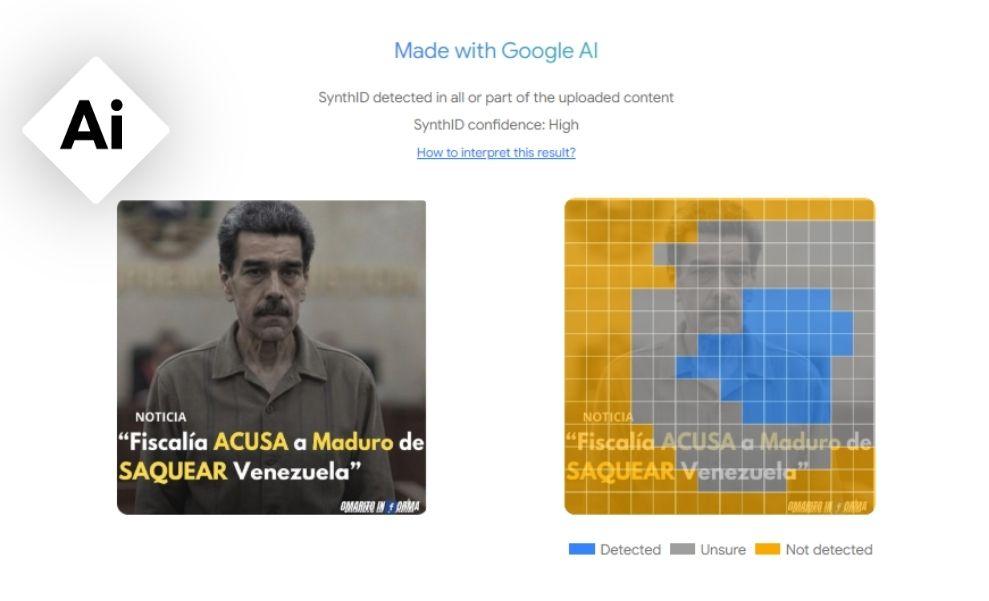 A ferramenta de detecção de conteúdo sintético gerado por IA do Google, a SynthID, revelou que “toda ou parte” da imagem foi criada digitalmente.