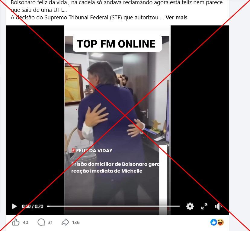 “Bolsonaro feliz da vida , na cadeia só andava reclamando agora está feliz nem parece que saiu de uma UTI”, diz uma das publicações que circulam no Facebook, no Instagram, no X e no TikTok.